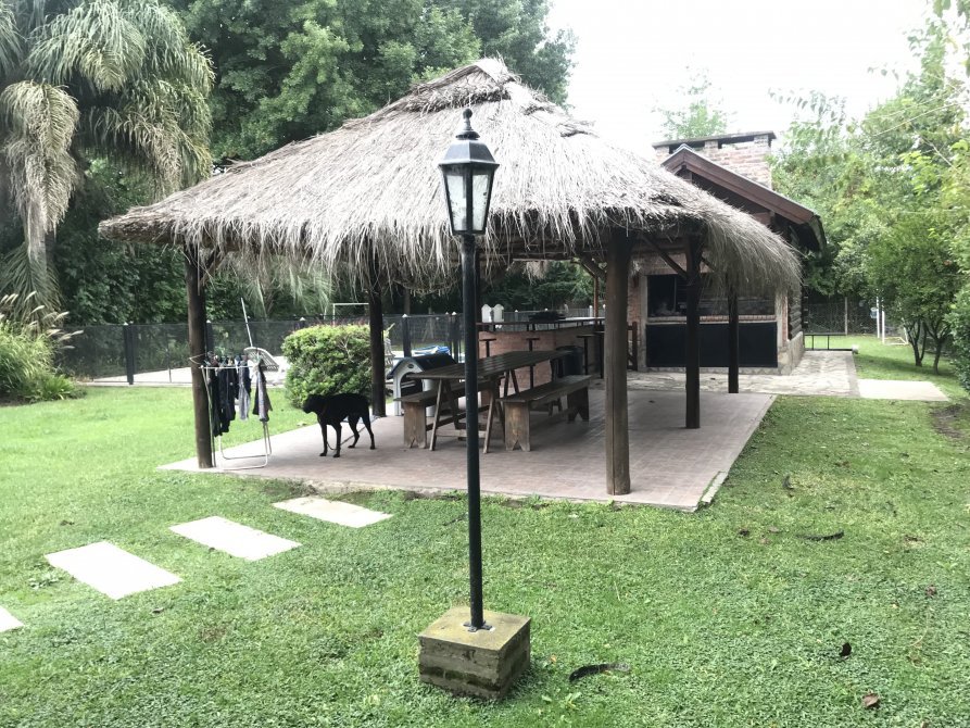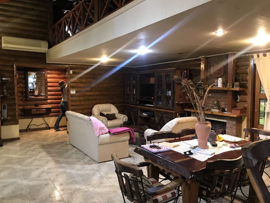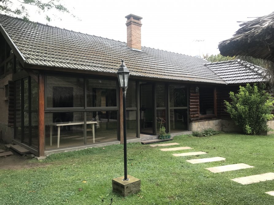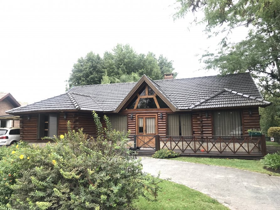Hermoso chalet de troncos a la vista sobre 1200 m². Amplio living, comedor diario, cocina, jardín de invierno, amplio playroom, dos dormitorios, uno en suite, cuarto auxiliar con baño, lavadero. Pileta de natación, quincho de paja, parrilla, amplísimo parque. Acepta propiedad en San Vicente!! Imperdible!!