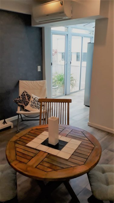 Consta de living con piso de porcelanato simil madera, mesa con cuatro sillas, iluminaciòn Led, aire acondicionado inteligente,